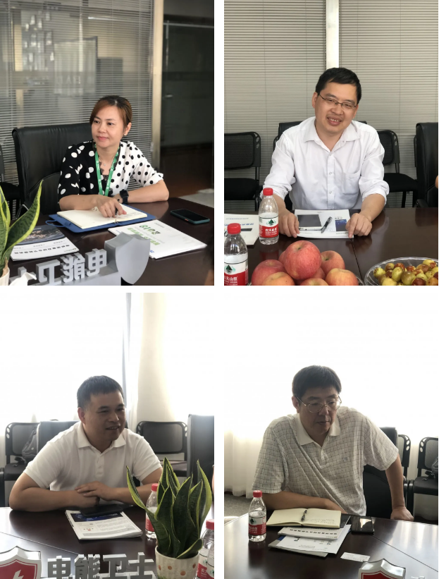 南德电气董事长戴珏珺和技术总监曾超向大家介绍了公司情况。南德电气成立于2010年,是一家集研发、生产、销售和服务为一体的电能质量与电力节能控制技术及相关产品研发制造与服务的国家高新技术企业,致力于为用户提供电能质量、能耗管理和安全用电保障的系统解决方案。公司拥有电能质量治理设备和loT检测终端制造能力,以及云平台软件开发的完整产业链,帮助用户实现能源的可视化管理,提供能源数据服务和综合电力节能解决方案,为企业用户高效绿色用能提供一站式服务。拥有自主知识产权的无功补偿、三相负荷不平衡、谐波、电压暂降等治理技术处于国内领先水平。公司的设备产品包括电能质量治理设备系列、物联智能监测终端系列、节能设备系列。依托电能质量治理设备的制造基础和工业互联网、云平台及大数据分析等及前沿技术,推出了拥有自主知识产权的“电能质量隐患预警/管理系统”,实现在线、远程对用户电网电能安全隐患实时预警和管理,为电网电能质量、运行可靠性及防范电气火灾提供了监管手段和工具。南德电气领导带领到访一行参观了产品展览室,并就已实施完毕的典型案例进行了在线演示、观摩、讲解。